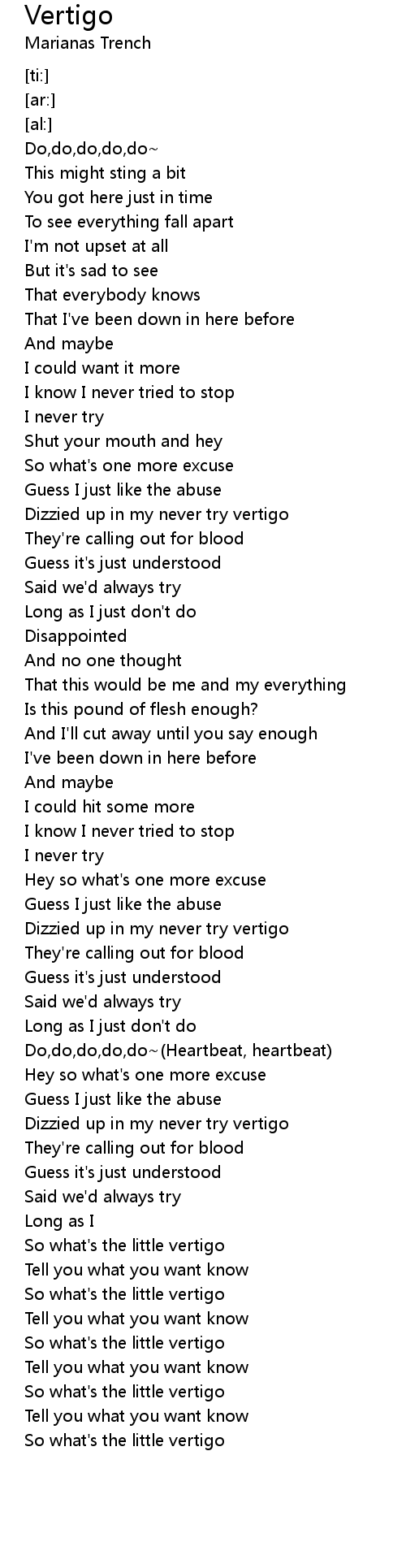 Dizzied up in my never try vertigo |