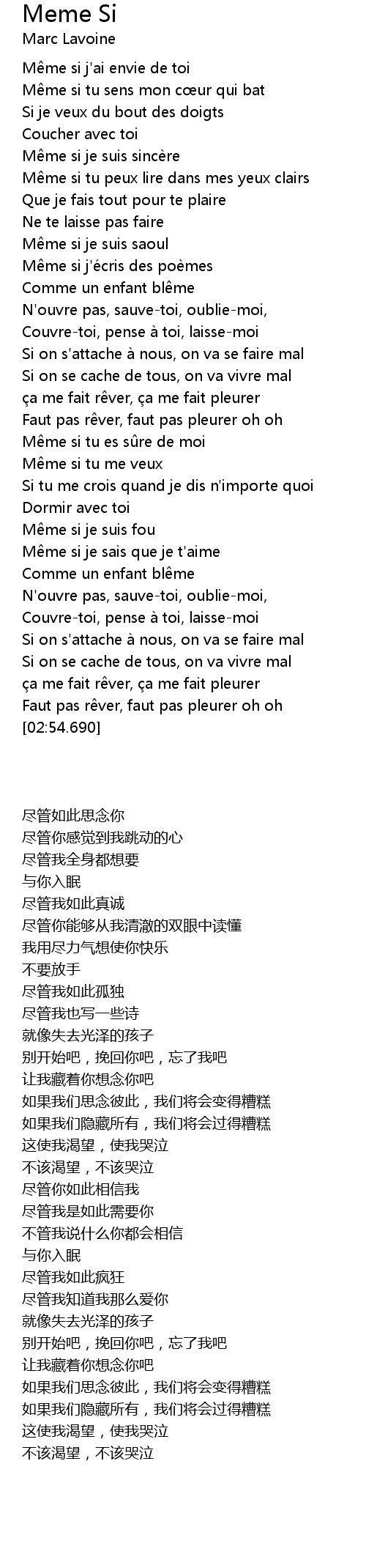 | [00:38.890] | M me si tu peux lire dans mes yeux clairs |