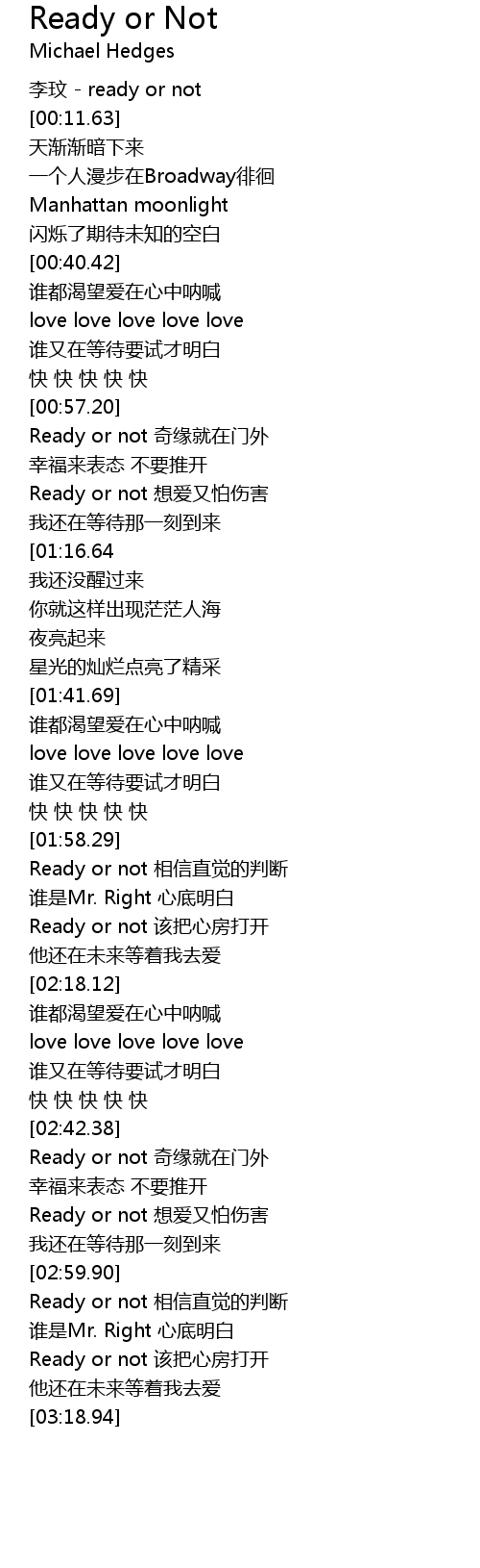| [02:51.40] | Ready or not 想爱又怕伤害 |