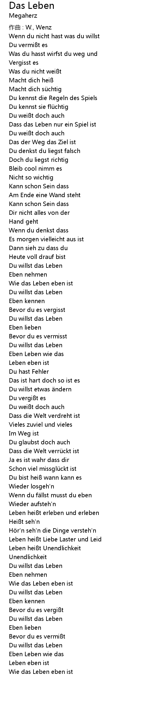 | 歌曲 | Das Leben |