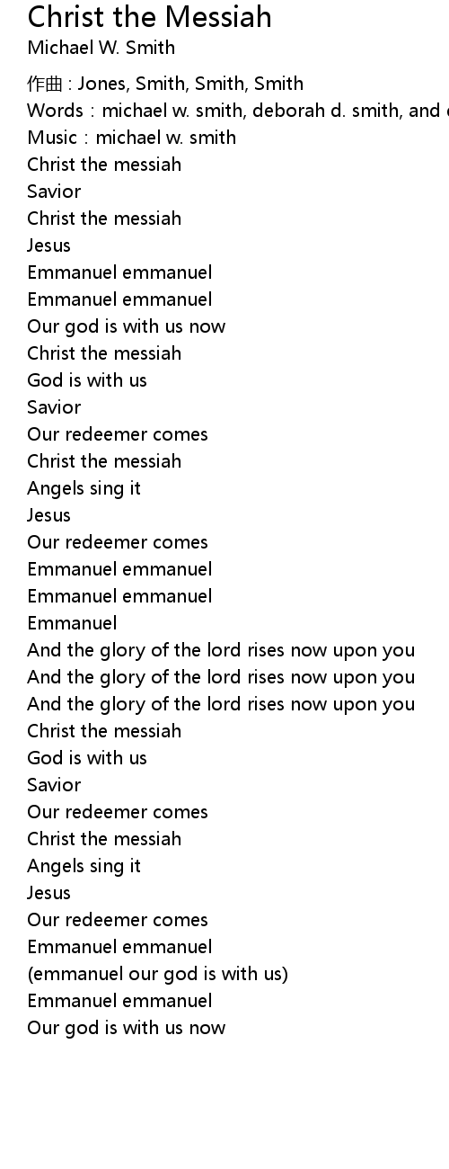 | Words: michael w. smith, deborah d. smith, and elizabeth l. jones | |