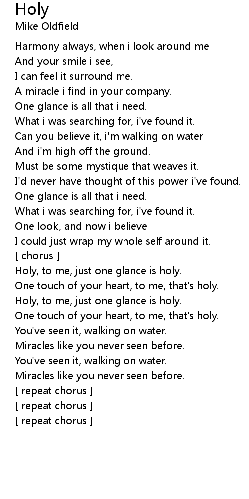 One touch of your heart, to me, that's holy. |