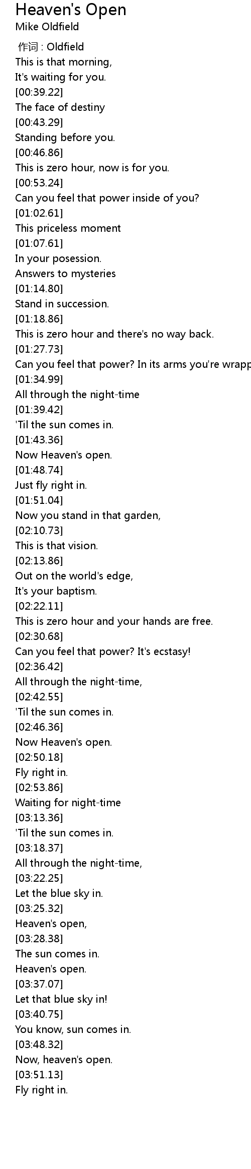 | [00:00.00] | 作词 : Oldfield |