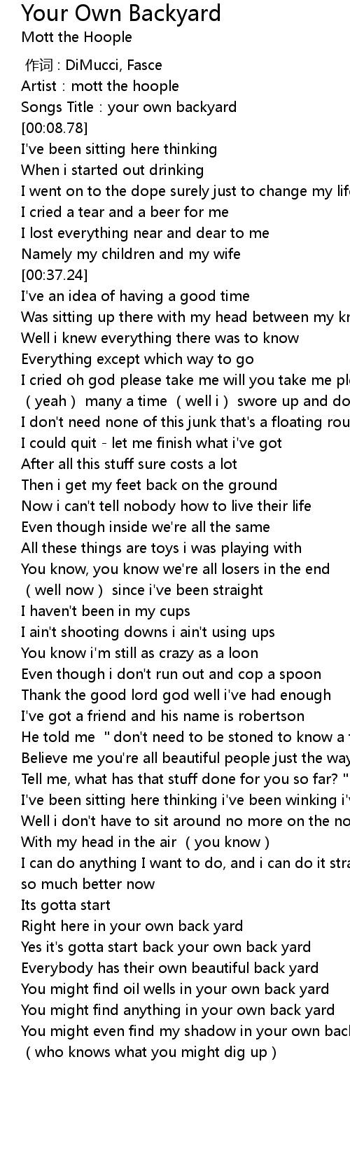 | [00:05.71] | Songs Title:your own backyard |