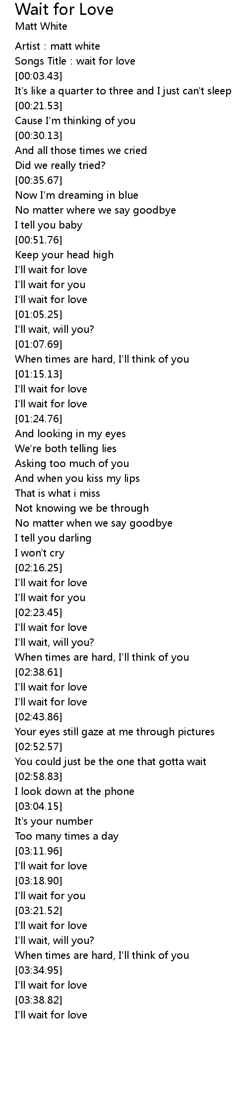 | [03:23.27] | I'll wait for love |