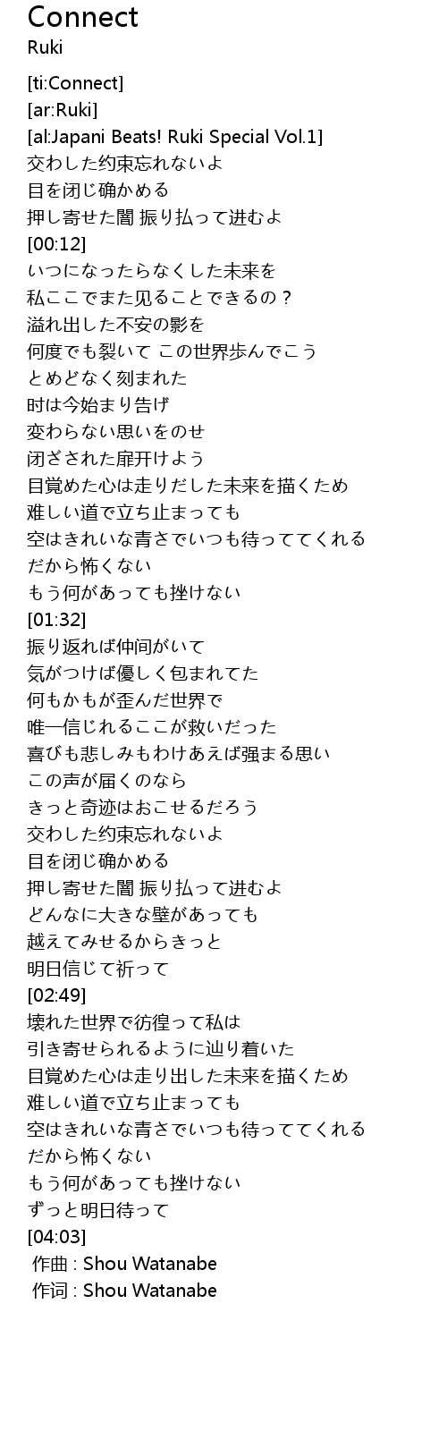 | [00:00.00] | zuò cí : Shou Watanabe |