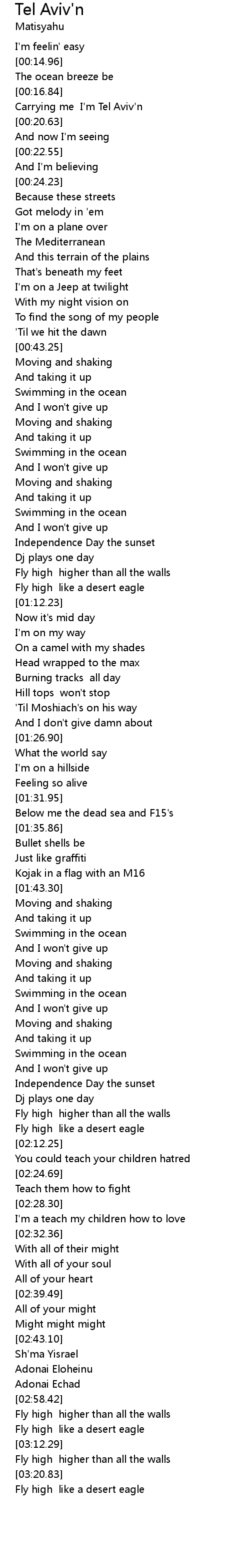 Carrying me I'm Tel Aviv'n |