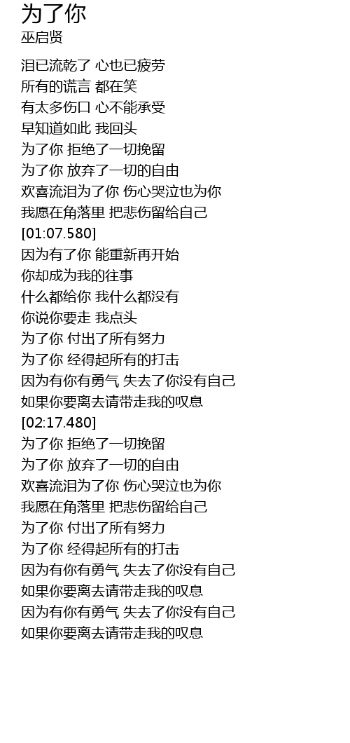 | [02:58.240] | 欢喜流泪为了你 伤心哭泣也为你 |