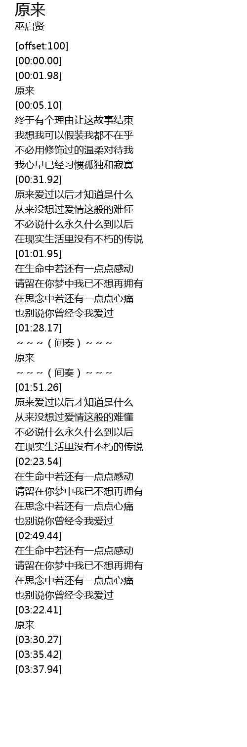 | [03:24.34] | 原来 |