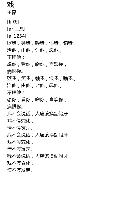 | [04:42.72] | 我不会说话,人应该换副假牙, |