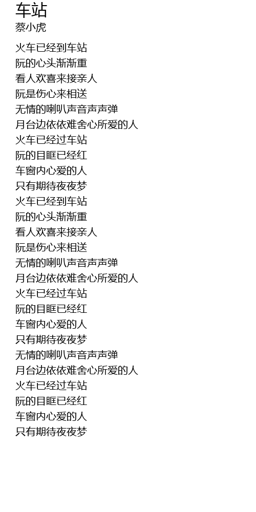 | [01:09.000] | 月台边依依难舍心所爱的人 |