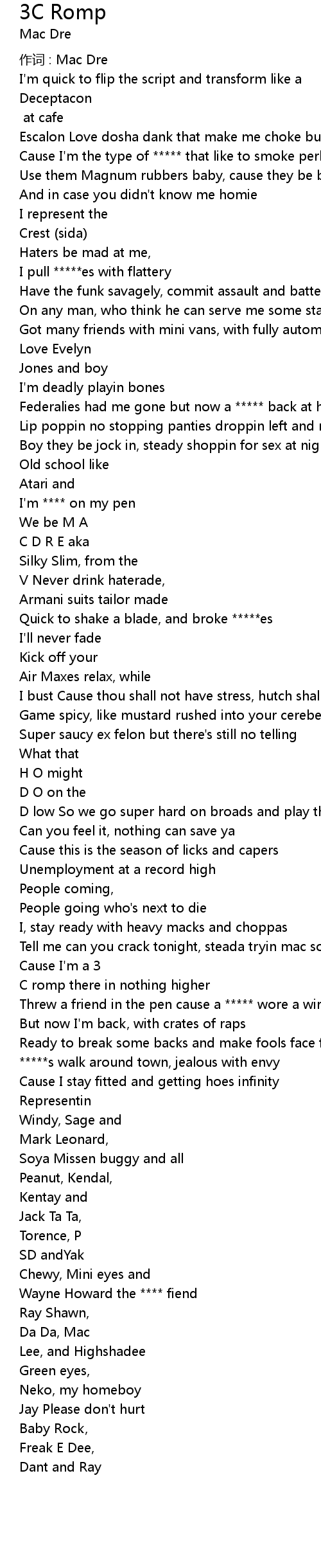 | 作词 : Mac Dre | |