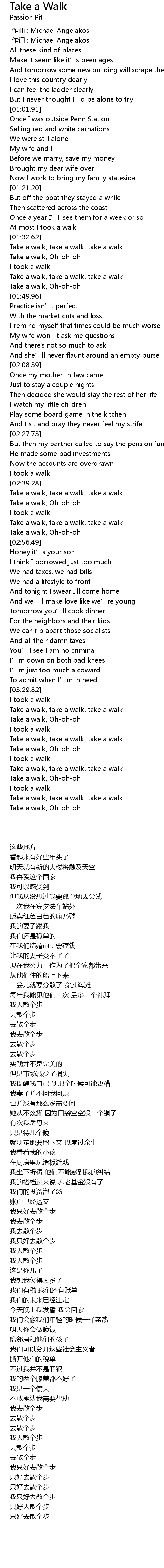 | [03:50.64] | Take a walk, take a walk, take a walk |