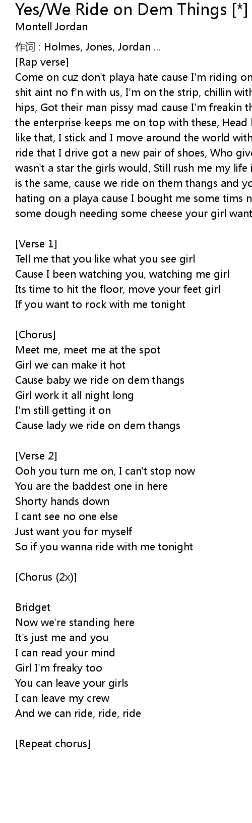 | 歌曲 | Yes/We Ride on Dem Things [*] |