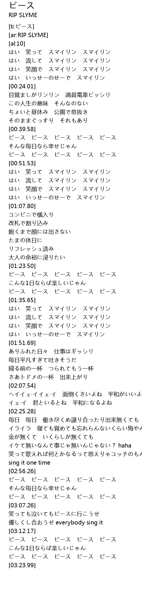 | [03:04.04] | ピース ピース ピース ピース ピース |