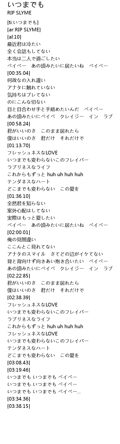 | [03:22.37] | いつまでも いつまでも ベイベー |