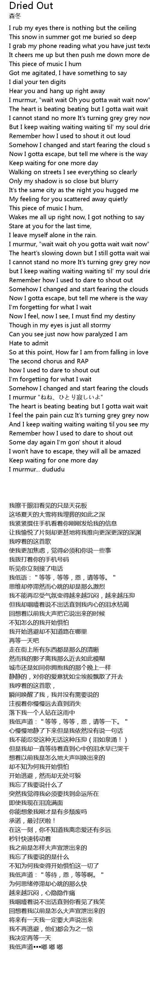 | [00:52.490] | But I keep waiting waiting waiting til' my soul dries out |