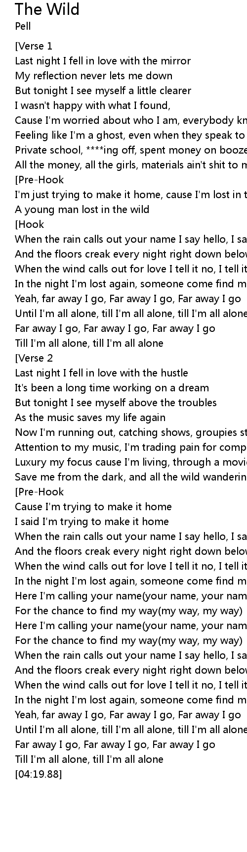 | [00:50.79] | I'm just trying to make it home, cause I'm lost in the wild |