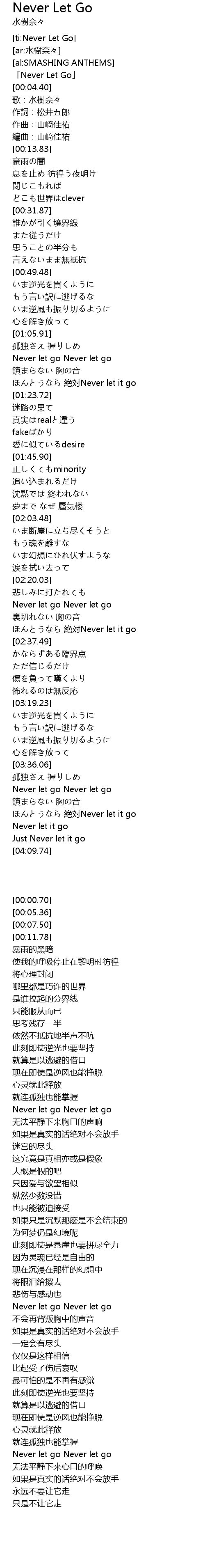 | [02:32.28] | ほんとうなら 絶対Never let it go |