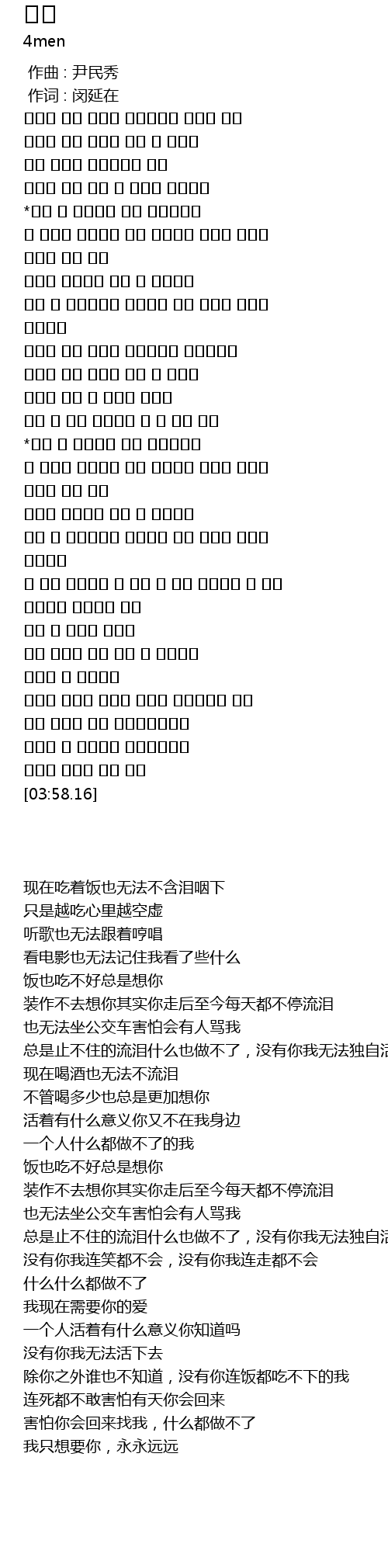 | [02:43.12] | 总是止不住的流泪什么也做不了,没有你我无法独自活下去 |