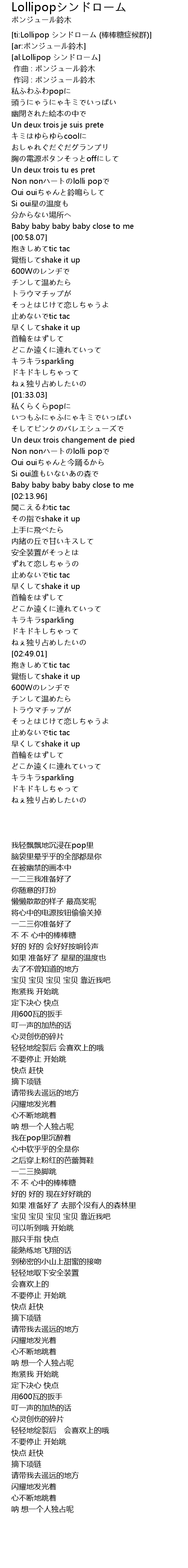 | [ti:Lollipop シンドローム (棒棒糖症候群)] | |