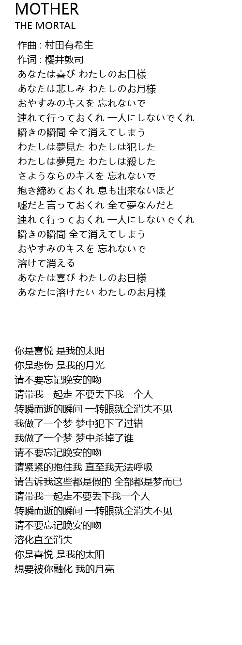 | 歌曲 | MOTHER |