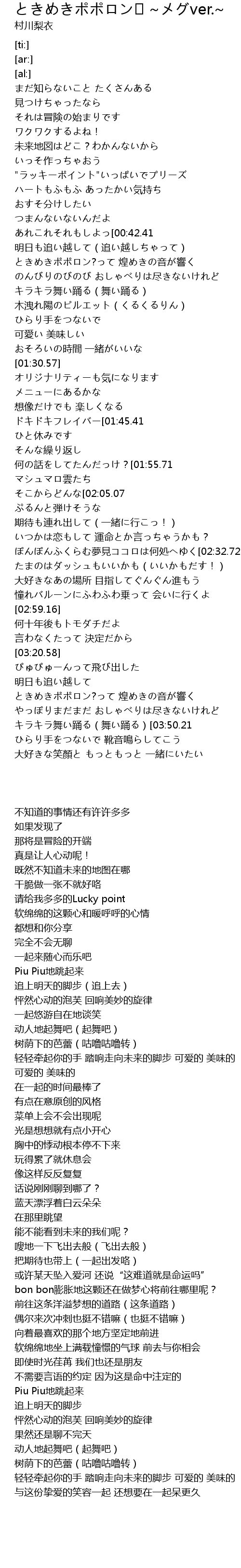 | [03:33.46] | ときめきポポロン?って 煌めきの音が響く |