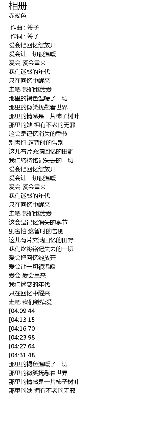 | [04:45.95][04:16.70] | 爱会 爱会重来 |