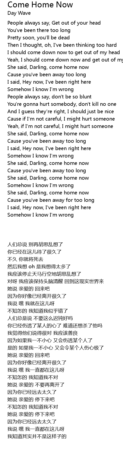 She said, Darling, come home now |