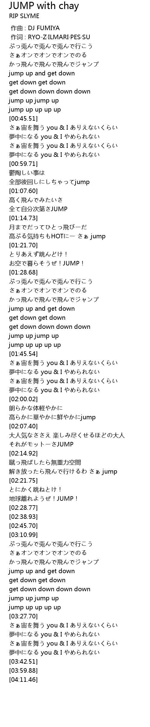| [03:25.66] | jump up up up up |