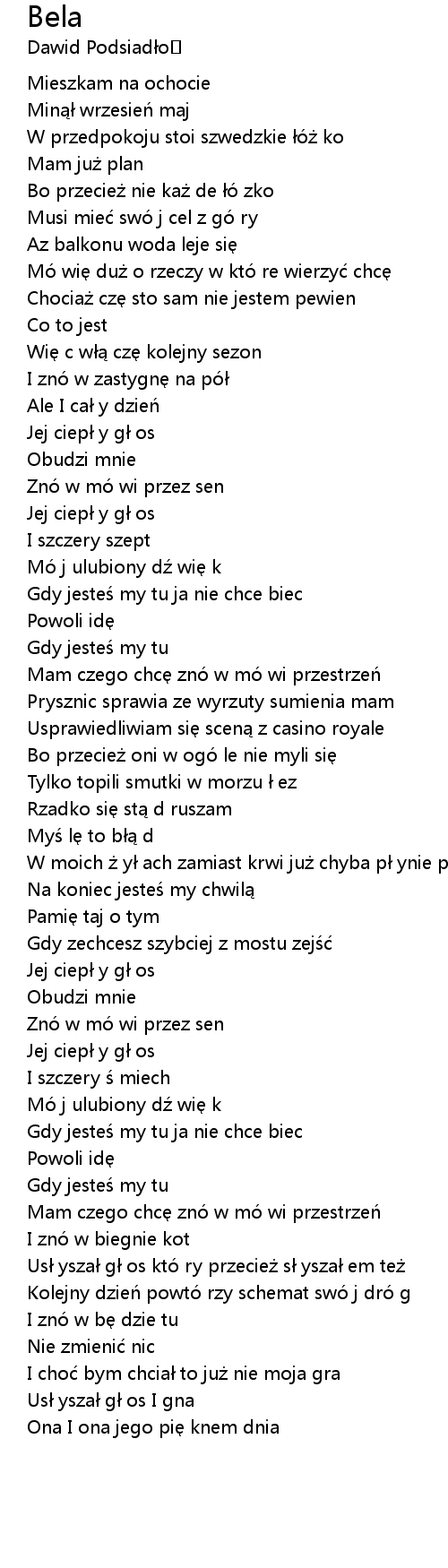 | [01:26.37] | Mam czego chcę znó w mó wi przestrzeń |