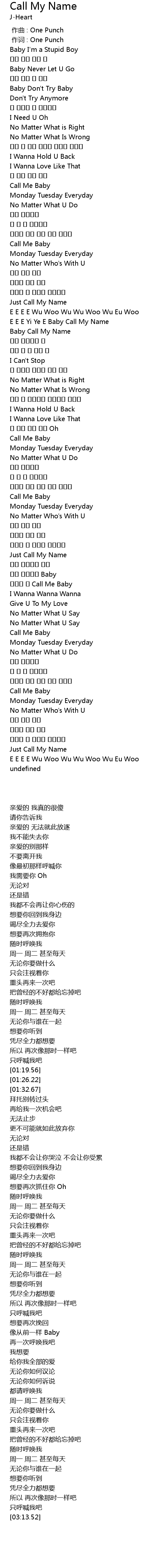 | [01:26.22] | E E E Yi Ye E Baby Call My Name |