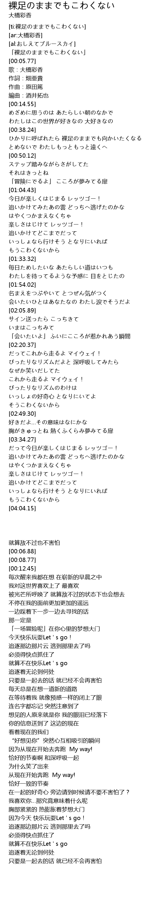 | [00:00.64] | 「裸足のままでもこわくない」 |