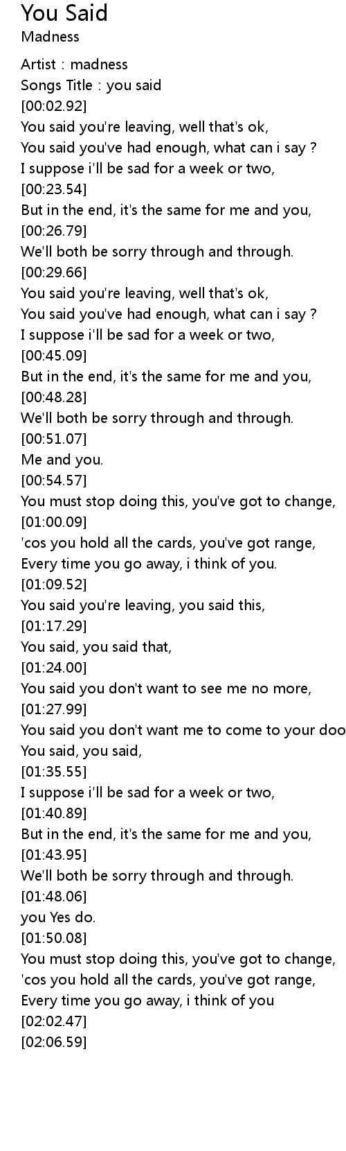 | [00:01.28] | Songs Title: you said |