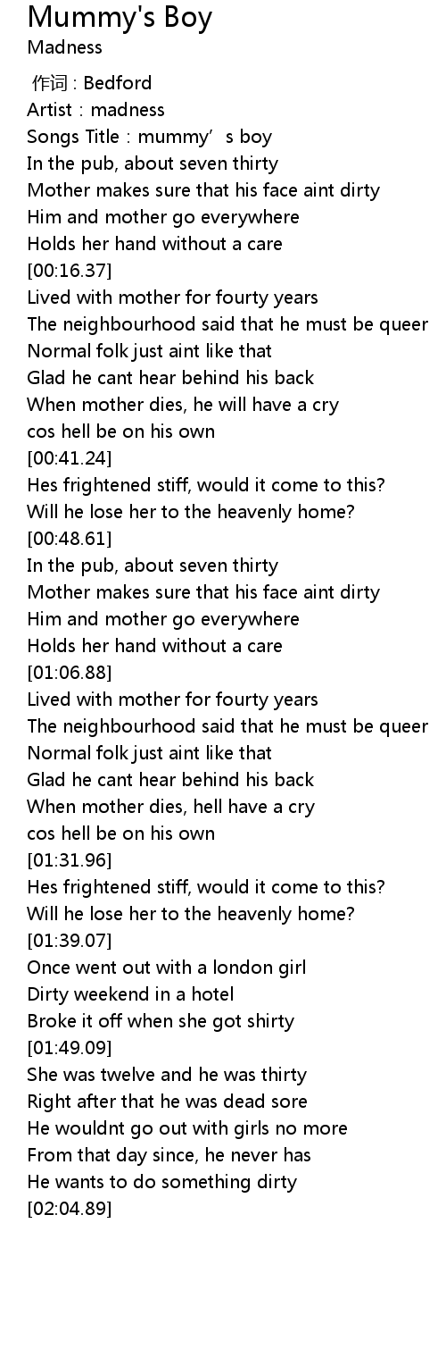 | [00:01.69] | Songs Title: mummy' s boy |