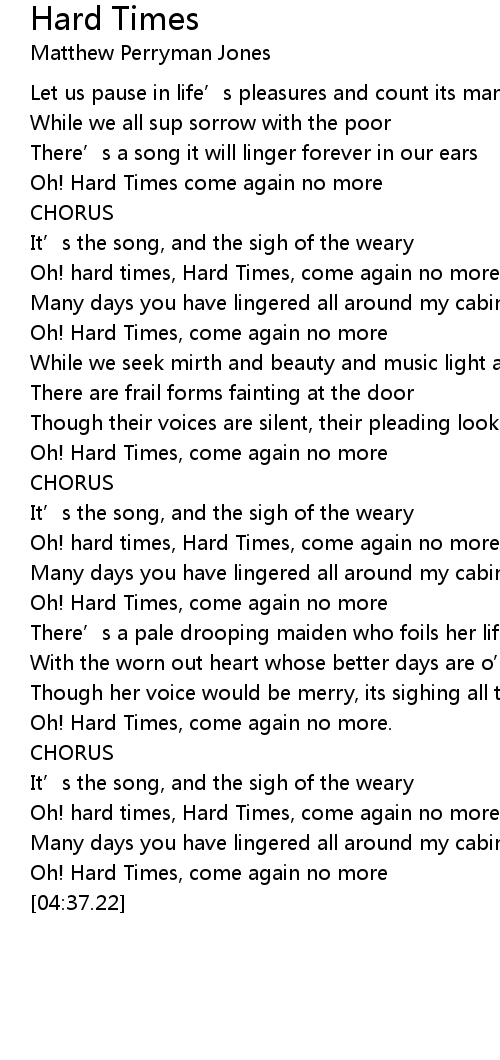 | [03:52.44] | Oh! Hard Times, come again no more. |