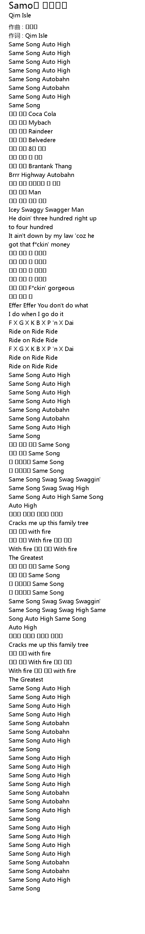 | Same Song Swag Swag High Same | |