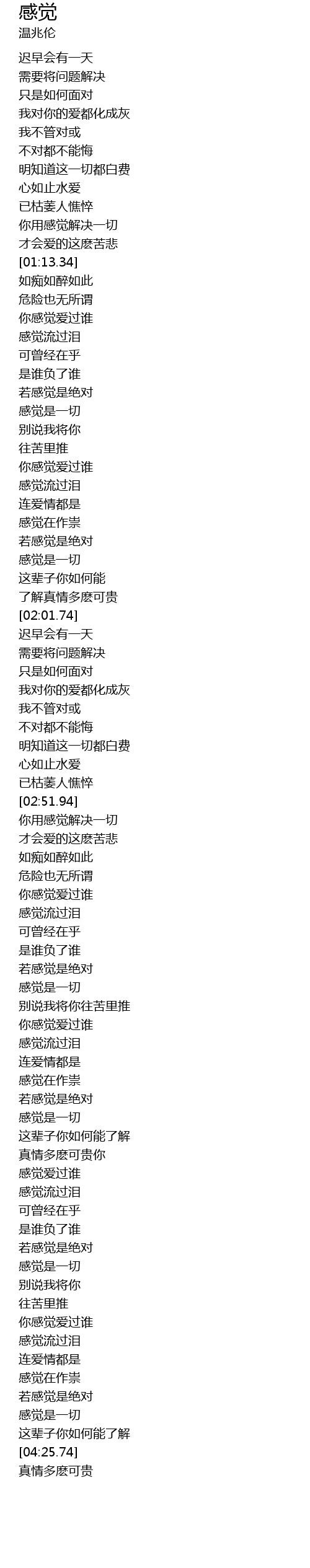 | [03:34.18] | 若感觉是绝对 |