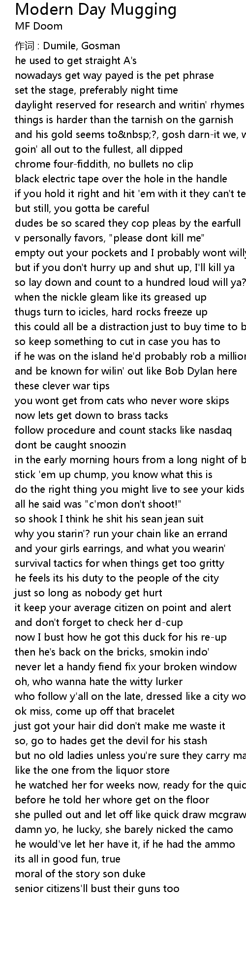 | 歌曲 | Modern Day Mugging |