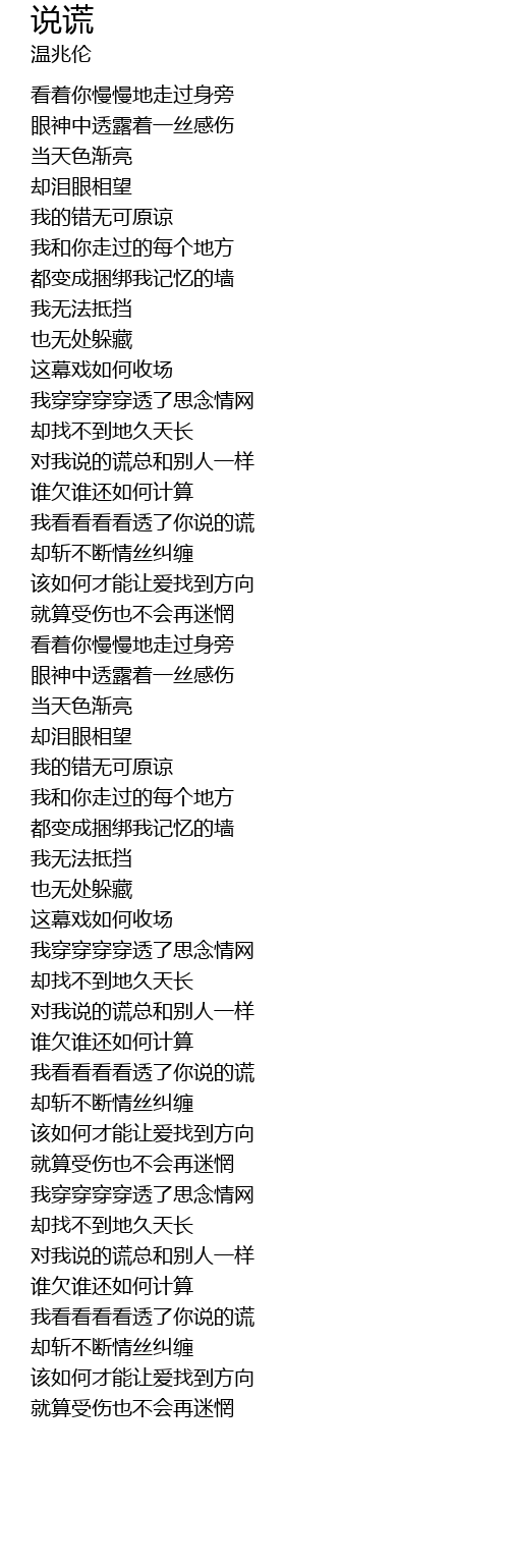 | [04:10.45] | 我看看看看透了你说的谎 |