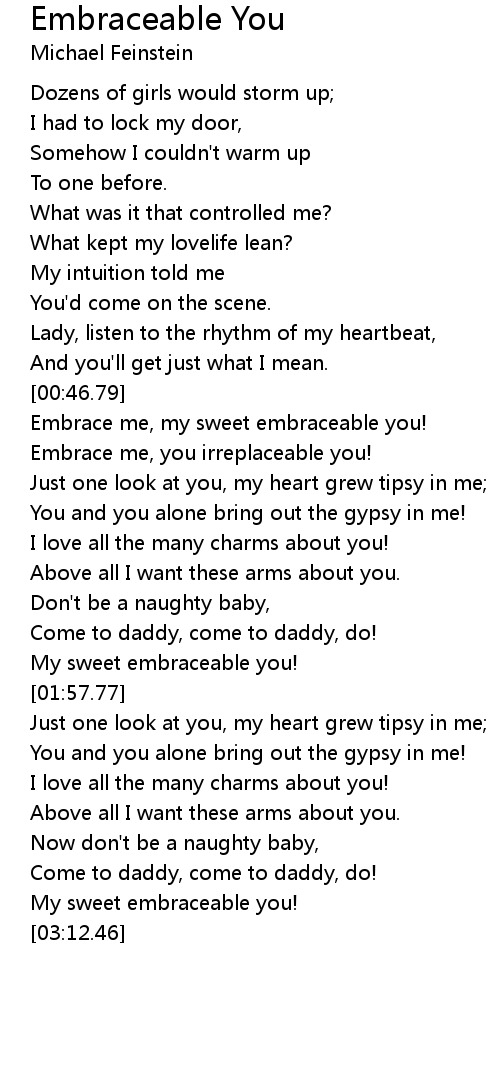 Embrace me, my sweet embraceable you! |
