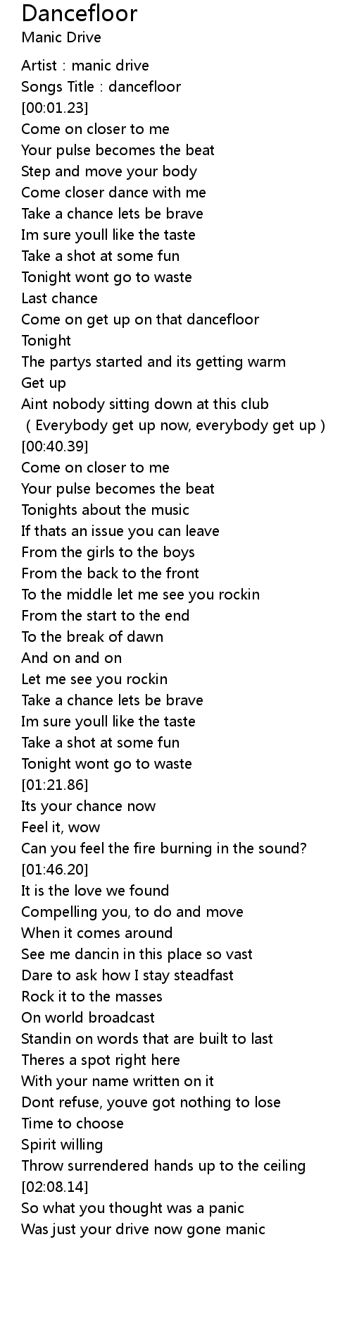 | [00:01.22] | Songs Title:dancefloor |