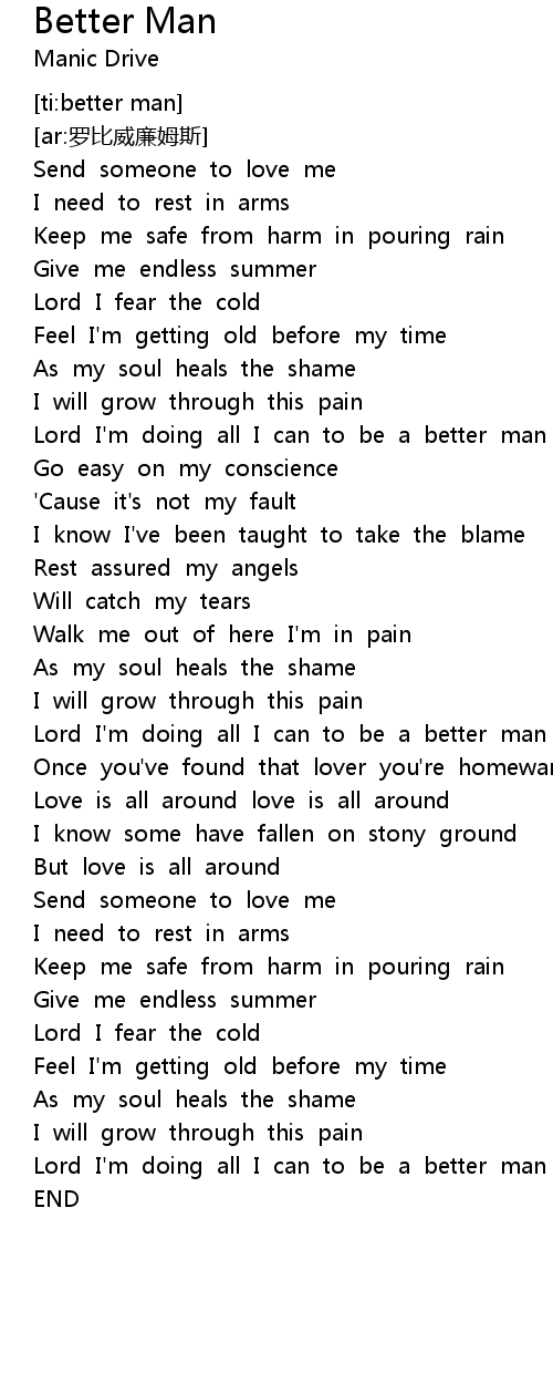 | [01:37.565] | Lord I'm doing all I can to be a better man |