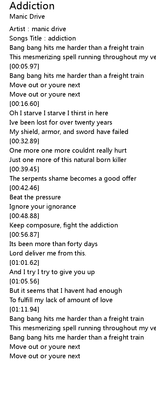 | [01:14.75] | Bang bang hits me harder than a freight train |