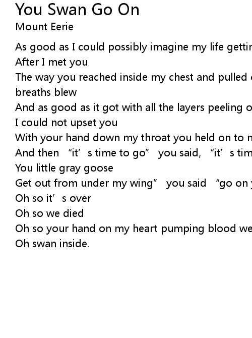 | Get out from under my wing” you said “go on you swan you turn loose” | |