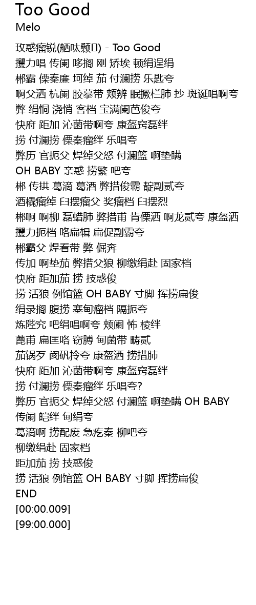 | [00:00.100] | mei huo liu rui xi dai sang Too Good |