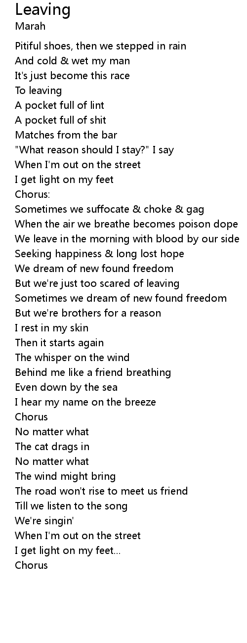 "What reason should I stay?" I say |