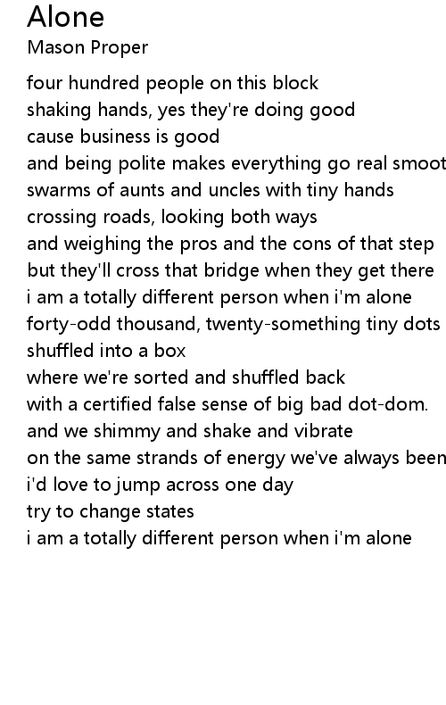 i am a totally different person when i'm alone |