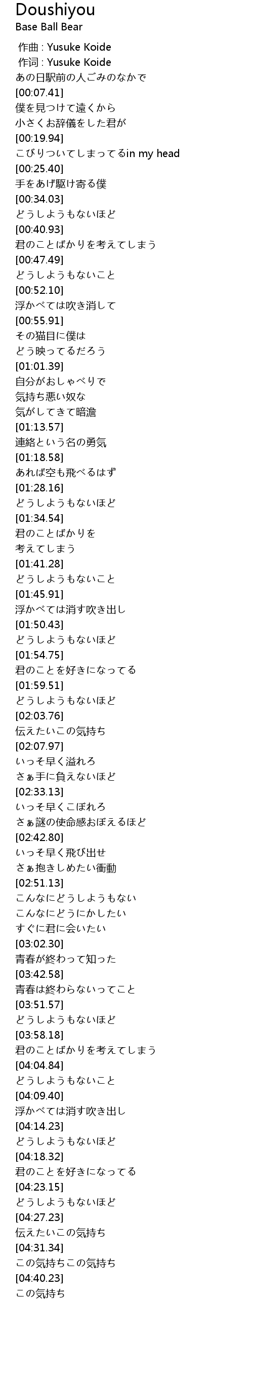 [00:01.00] 作词 : Yusuke Koide