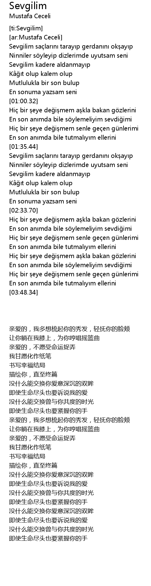| [03:17.58] | En son an mda bile s ylemeliyim sevdi imi |